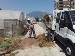 Antalya Büyükşehir Belediyesi, Finike İlçesinde merkez ve boş arazilere atılan çöpleri topluyor.