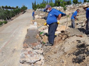 Büyükşehir ekipleri mezarlıklarda temizlik çalışmalarının yanında bakım ve onarım çalışmalarını da düzenli olarak gerçekleştiriyor. Alanya Cikcilli Mezarlığı’nda toprak kaymasını önlemek için sorun yaşanan bölüme taş duvar yapıldı. Karapınar Mahallesi Yoğunoluk Mezarlığı’nın çevresi ise tel çit ile çevriliyor. Döşemealtı ilçesi Yeşilbayır Mahallesi Mezarlığı da tel çit ile çevrildi. Kemer ve Korkuteli mezarlıklarında da çevre temizliğinin yanı sıra bakım ve onarım çalışması yapıldı.