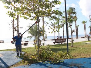 Büyükşehir Belediyesi Park ve Bahçeler Dairesi Başkanlığı ekipleri Konyaaltı Sahili ve Akdeniz Bulvarı’nda çalı grubu bitkiler ile ağaçları kışa hazırlıyor. Konyaaltı Varyant’tan Boğaçayı‘na kadar sahil boyunca geniş çaplı bir çalışma yürüten ekipler, fırtına mevsimi öncesi kuruyan, kırılma tehlikesi bulunan ağaçların dallarını budayarak, bakımlarını yapıyor.