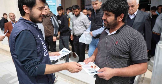 Namazın ardından polis ekipleri camiden çıkanlara bilgilendirme broşürü dağıttı.