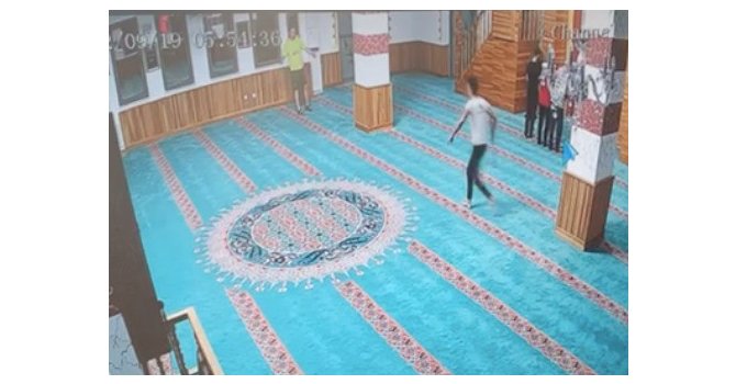 Antalya'nın Manavgat ilçesinde bir camiye sabah namazında cemaat namaz kılarken elinde kazma ve ayakkabısıyla giren alkollü turist, sınır dışı edildi. O anlar güvenlik kameraları tarafından saniye saniye kaydedildi.