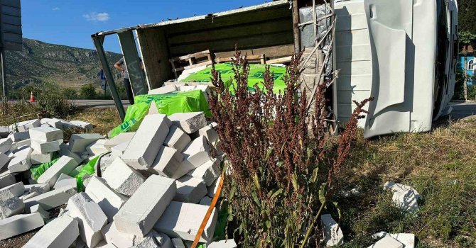 Burdur'un Çeltikçi ilçesi Ağlasun yolu üzerinde gazbeton yüklü kamyonet, kontrolden çıkarak şarampole devrildi. Kazada yaralanan olmazken, araçta ve yüklü inşaat malzemelerinde maddi hasar oluştu.