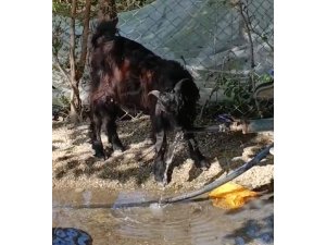 Çeşmeyi açıp musluktan su içen keçi ilgi odağı oldu