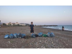 Mersin'in Bozyazı ilçesine tatil için gelen öğrenci, sahilde çevre temizliği yaparak örnek bir davranış sergilemesinden dolayı belediye başkanı tarafından ödüllendirildi.