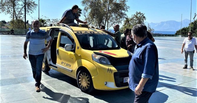 Antalya'da sınırları dışından müşteri aldığı için aracının bağlanacağını öğrenen ticari taksi sürücüsü, araç girişinin yasak olduğu Cumhuriyet Meydanı'na gelerek aracının üzerine çıktı. Şahıs, meslektaşlarının araya girmesi ile ikna edildi.