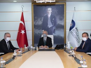 Antalya Büyükşehir Belediye Başkanı Muhittin Böcek’i tedavi gördüğü hastanede ziyaret eden CHP Genel Başkanı Kemal Kılıçdaroğlu, ardından Antalya Büyükşehir Belediyesi’ne ziyaret gerçekleştirdi. CHP Genel Başkanı Kemal Kılıçdaroğlu, Büyükşehir Belediyesi’nde CHP Yerel Yönetimlerden Sorumlu Genel Başkan Yardımcısı Seyit Torun ile birlikte Büyükşehir Belediyesi Başkan Vekili Mehmet Hacıarifoğlu ve Büyükşehir Belediyesi Genel Sekreteri Cansel Tuncer ile toplantı yaparak, belediye çalışmaları hakkında bilgiler aldı.