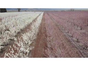 Amik Ovası'nda geniş bir alanda üretimi yapılan erik, nektarin ve kayısı ağaçları, beyaz ve pembe çiçekleriyle adeta görsel şölen oluşturdu. Dron ile görüntülenen meyve bahçeleri, dallarında açan çiçeklerle adeta göz kamaştırdı. Ovadaki bahçe sahipleri, bu yıl yağışların da etkisiyle meyvelerdeki rekolte beklentisinin yüksek olduğunu söyledi.
