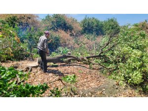 Hatay'da don afetinde zarar gören ve kuruyan narenciye ağaçları, yerlerine yenileri dikilmesi için çiftçiler tarafından kesildi.