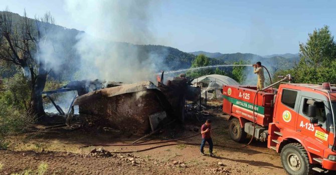 Antalya'nın Kumluca ilçesinde çıkan yangında bir ev kullanılamaz hale geldi.