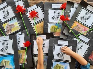 Minik öğrenciler Gazi Mustafa Kemal Atatürk'ü andıkları şiirler okudu ve şarkılar söylendi. Minikler ayrıca temsili olarak hazırlanan Anıtkabir maketine de karanfiller bıraktı.