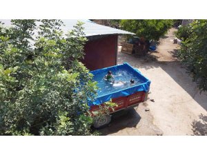 Seyfullah Yılmaz, yeğenleri ve çocukları mutlu olsun diye römorktan havuz yaptıklarını belirterek, "Köyümüzde havuz yok. Havalar sıcak. Denize gidemiyoruz. Biz çiftçiyiz çalışıyoruz. Çiftçi çocuğunun eğlencesi oldu. Köyde sürekli iş oluyor. Çocuklar çok seviniyor. Köyden tüm çocuklar geliyor eğleniyorlar" dedi.