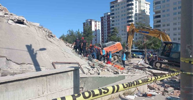 Kahramanmaraş'ta 6 Şubat depremlerinde hasar alan ve kontrollü yıkımı yapılırken iş makinesinin üzerine çöken binanın enkazından operatörün cansız bedeni çıkarıldı.