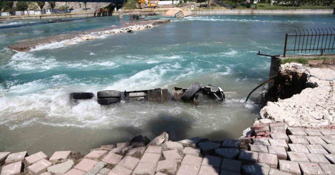 Adana'da sağanak yağışların ardından Seyhan Nehri kenarındaki yolda meydana gelen göçük onarılırken, tekrardan göçtü. İş makinesiyle nehre devrilen işçiler ölümden döndü.