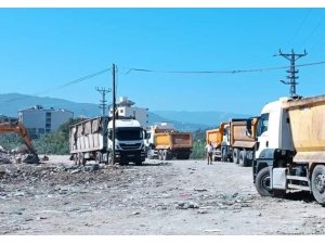 Hatay'ın Samandağ ilçesi Yeşilada Mahallesinde bulunan çöp döküm sahasında bulunan çöpler kaldırılmaya başlandı.