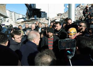 Cumhurbaşkanı Recep Tayyip Erdoğan, depremin vurduğu Kahramanmaraş'ın Pazarcık ilçesinde incelemelerde bulundu.