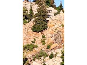 Kahramanmaraş'ın Göksun ilçesinin dağlık alanlarında dolaşan anne ayı ve iki yavrusu cep telefonu kamerası ile görüntülendi.