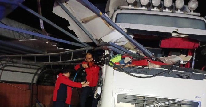 Edinilen bilgiye göre, merkez Akdeniz ilçesi Gazi Mahallesi İnönü Bulvarı üzerinde bulunan narenciye tesisine yükleme için gelen Ökkeş P. idaresindeki yabancı plakalı tır, manevra yaptığı sırada tesisteki korkuluk demiri şoför kabinine saplandı. Araç içerisinde sıkışan sürücü yaralanırken, olay yerine sağlık ve itfaiye ekipleri sevk edildi. Mersin Büyükşehir Belediyesine bağlı itfaiye ekiplerince yapılan çalışmada, sürücü Ökkeş P., sıkıştığı araçtan çıkarılarak sağlık ekiplerine teslim edildi. Ambulansla hastaneye kaldırılan tır sürcüsünün sağlık durumunun iyi olduğu bildirildi.