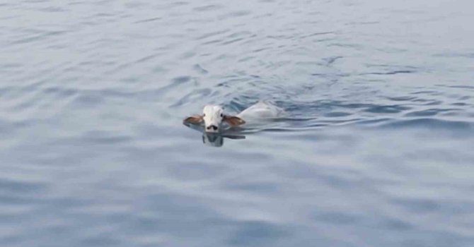 İskenderun Körfezi'ne yurt dışından getirilen angus cinsi sığır, sevkiyat esnasında gemiden kaçarak denize düştü. Yüzerek kaçmaya çalışan angusun o anları kameraya yansıdı. Angus denizden ekiplerce kurtarılarak kıyıya çıkarıldı.