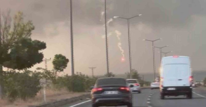 Hatay'ın İskenderun ilçesinde işaret fişeğinin deniz üzerinde düşme anını görüntüleyen vatandaşlar, gökyüzünde beliren cismin ne olduğunu anlayamayınca panik yaşadılar. O anlar ise kameraya yansıdı.