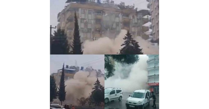 Kahramanmaraş'ta meydana gelen ikinci deprem anında cep telefonu kameralarına yansıyan bir görüntüde bir binanın sallanması ile arkadaki başka bir binanın da çökme anları yansıdı.