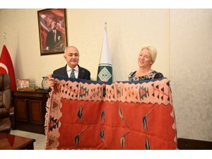 Konuşmaların ardından Belediye Başkanı Kadir Kara, UNDP Türkiye Mukim Temsilcisi Louisa Vinton'a kilim hediye etti.
