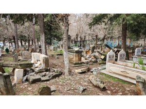 Adıyaman'da deprem sebebiyle çok sayıda mezar zarar gördü. Bazı mermer mezarlar devrilirken, mezar taşları da kırıldı.