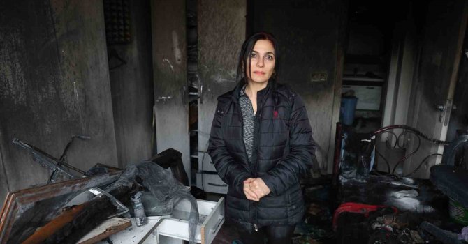 Evlatlarıyla evde oturdukları esnada alevlerin içinde kaldıklarını ifade eden Özlem Berrak, "Çocuklar birlikte yangın esnasında evdeydik. Oğlum yangın var anne dedi. Geldiğimizde kanepeler ve perdeler yanıyordu. Birden alevler yükselince müdahale edemedik. İtfaiye ekiplerine haber ettik. Ekipler de gelip müdahale ettiler. Yangını fark etmedik. Küçük oğlum koku var, yangın çıktı galiba diye söyledi. Geldiğimizde ise alevlerle karşılaştık. Apartman girişine inip yardım istedim, yardım edin diye bağırdım. Komşular da itfaiye ekiplerine haber verdiler. Depremde bu mahallede oturuyorduk. Depremde evimiz yan yattı ve sonrasında yıkıldı. Burada 1 yıldır yaşıyorum. Bu odada büyük oğlum kalıyor. Oğlum içeride değil de mutfaktaydı. Odasına geri döndüğünde odam yanıyor diye bağırmıştı. Çocuğumun odası komple yandı ve biraz da benim odama sıçradı. Evimizin eski haline dönmesini çok istiyorum" ifadelerini kullandı.
