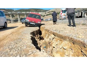Osmaniye'de depremde yarılan karayolunun içine ticari araç düştü. Ölen ya da yaralananın olmaması teselli kaynağı oldu.