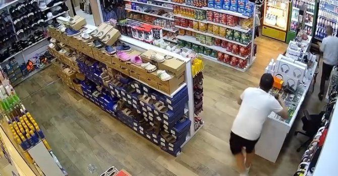 Antalya'nın Alanya ilçesinde dün akşam saatlerinde meydana gelen 4 büyüklüğünde depreme markette yakalanan bir kişinin elindeki çay bardağı ile kaçtığı anlar kameralara yansıdı.