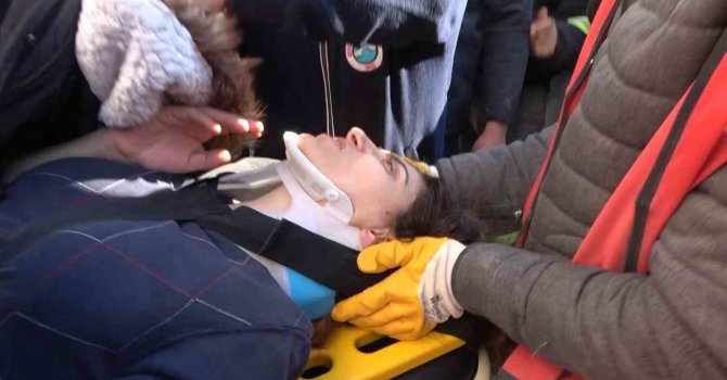 Büyük bir dikkatle sedyeye alınan genç kadın, tekbirler eşliğinde ambulansa taşınarak hastaneye kaldırıldı.