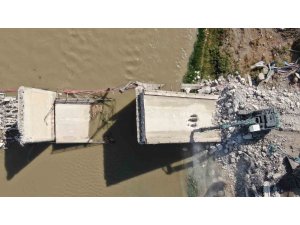 dolayı kopmaların olduğu köprümüz var. Onu yıkmaya çalışıyoruz, enkazını kaldırmaya çalışıyoruz. Çalışmalar yorucu gidiyor ama devletimiz ve milletimiz var olsun. Köprü sağlam ama eski olduğu için ayaklarını dar yapmışlar. Ondan dolayı olduğu yere çökmüş. Parçalamakta zorlanıyoruz, demir oranı fazla olduğu için beni de biraz şaşırttı yıkılmış olması. En az 1 haftada enkaz kalkabilir" dedi.