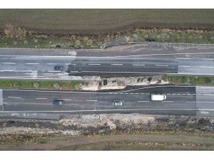Kahramanmaraş merkezli meydana gelen depremler sonrası fay hattının geçtiği ve zarar verdiği karayolu dron ile görüntülendi.