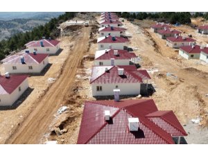 Asrın felaketinde yıkımın yaşandığı Kahramanmaraş'ın Dulkadiroğlu ilçesi Kazanlıpınar Mahallesi'nde 80 köy evinin yapımı sürüyor.