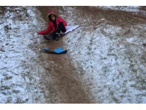 Karın tadını çıkaran 8 yaşındaki Yiğit İsmail Çam, "Kar topu oynadım ve kaydım. Karnem çok iyiydi. Annem ve babam beni buraya getirdi" dedi.