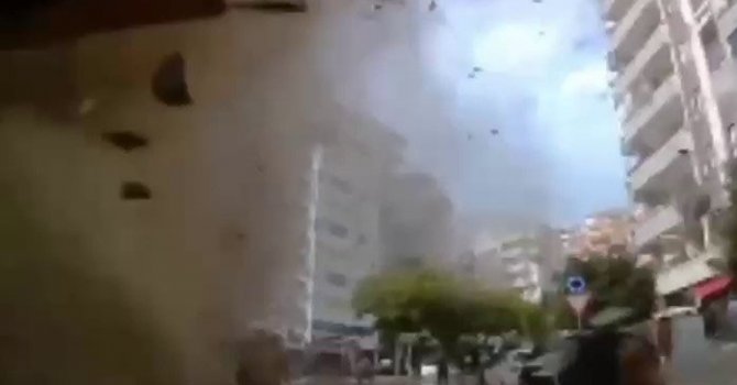 Kahramanmaraş Elbistan merkezli meydana gelen 7.6 büyüklüğündeki depremde, Çukurova ilçesine bağlı Güzelyalı Mahallesi'ndeki Sinem Apartmanı'nın yıkılma anı bir araç kamerasına yansıdı.