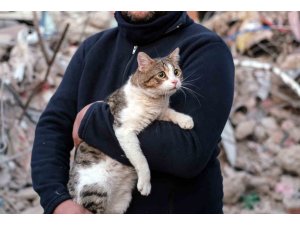 Kahramanmaraş'ta bir kedi, depremin 110'uncu saatinde yıkılan binanın enkazından canlı çıkartıldı.