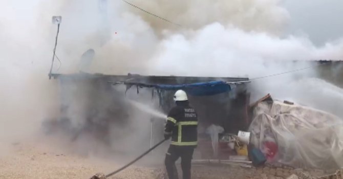Hatay'ın Reyhanlı ilçesinde depremzede ailenin kaldığı konteyner yanarak kullanılamaz hale geldi.