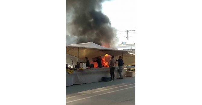 Adana'da depremzede aile tarafından semt pazarına kurulan çadır yanarken, olayda maddi hasar meydana geldi.