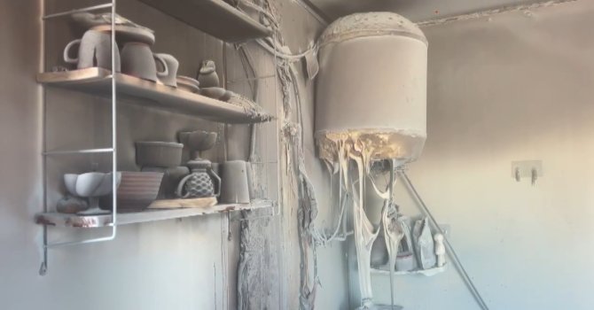 Hatay'ın Hassa ilçesinde çıkan yangından dolayı konteyner kullanılmaz hale geldi.