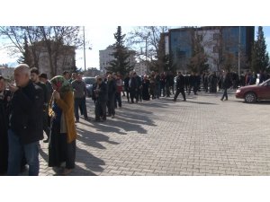 Kahramanmaraşlı depremzedeler, depremin ardından oluşturulan 10 bin liralık "Hane Başı Destek Ödemeleri"ni almak için Ziraat Bankası şubesi önünde metrelerce kuyruk oluşturdu.