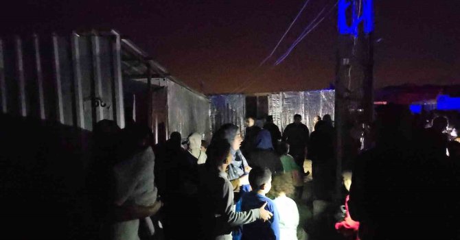 Hatay'da depremzede vatandaşların yaşadığı konteyner kentte çıkan yangında 3 konteyner alev alev yandı.