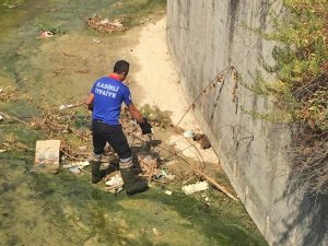 Osmaniye'nin Kadirli ilçesinde düştüğü derede mahsur kalan yavru köpek itfaiye ekiplerince kurtarıldı.