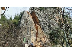 Kayanın karşısındaki apartmanda ikamet eden Oğuz Günay ise, kayanın depremde yarıldığını ve taşların düştüğüne dikkat çekerek, yetkililerin çalışma yaptığını kaydetti.