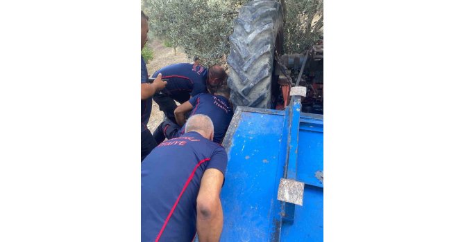 Osmaniye'nin Kadirli ilçesinde devrilen traktörün altında kalan sürücüyü itfaiye ekibi kurtardı, o anlar ise kameraya yansıdı.