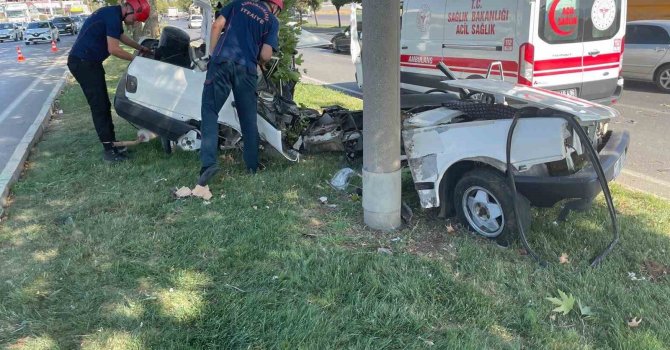 Kahramanmaraş'ta kontrolden çıkarak direğe çarpan Tofaş otomobil ikiye bölündü. Feci kazada 1 kişi hayatını kaybetti, 1 kişi ağır yaralandı.