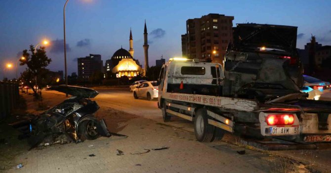 Adana'da aydınlatma direğine çarpan otomobilin ikiye bölündüğü kazada sürücü hayatını kaybetti.