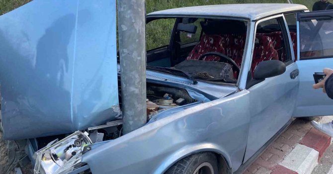 Burdur'da yolun karşısına geçen yayaya çarpmamak için kaldırıma çıkan araç trafik lambası direğine çarptı. Çarpmanın etkisiyle hurdaya dönen araçtan sürücü ve arkadaşı burnu bile kanamadan çıktı.