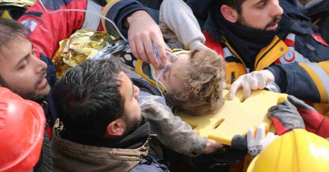 Yaralı halde çıkarılan çocuk, sağlık ekiplerince ambulansla hastaneye kaldırıldı.