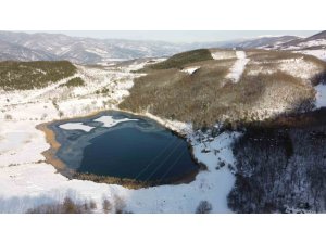 Bolu şehir merkezine yaklaşık 80 kilometre uzaklıkta bulunan Mudurnu ilçesinin doğa harikalarından biri olan Karamurat Gölü'nün çevresi, kar yağışıyla birlikte beyaza büründü. Taşkesti beldesine bağlı Akyokuş köyünde bulunan Karamurat Gölü, hava sıcaklıklarının düşmesi sebebiyle kısmen dondu. Dipten kaynayan ve vadilerden akan sular ile beslenerek doğallığını koruyan, etrafı çam ve köknar ağaçlarıyla çevrili Karamurat Gölü, kış manzarasıyla da hayranlık uyandırdı.
