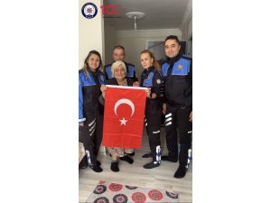 Burdur'da 112 Acil Çağrı merkezine Türk bayrağı talebinde bulunan yaşlı kadının isteği polis ekipleri tarafından yerine getirildi. Aynı zamanda doğum günü olan kadına ekipler tarafından pastalı sürpriz yapıldı.